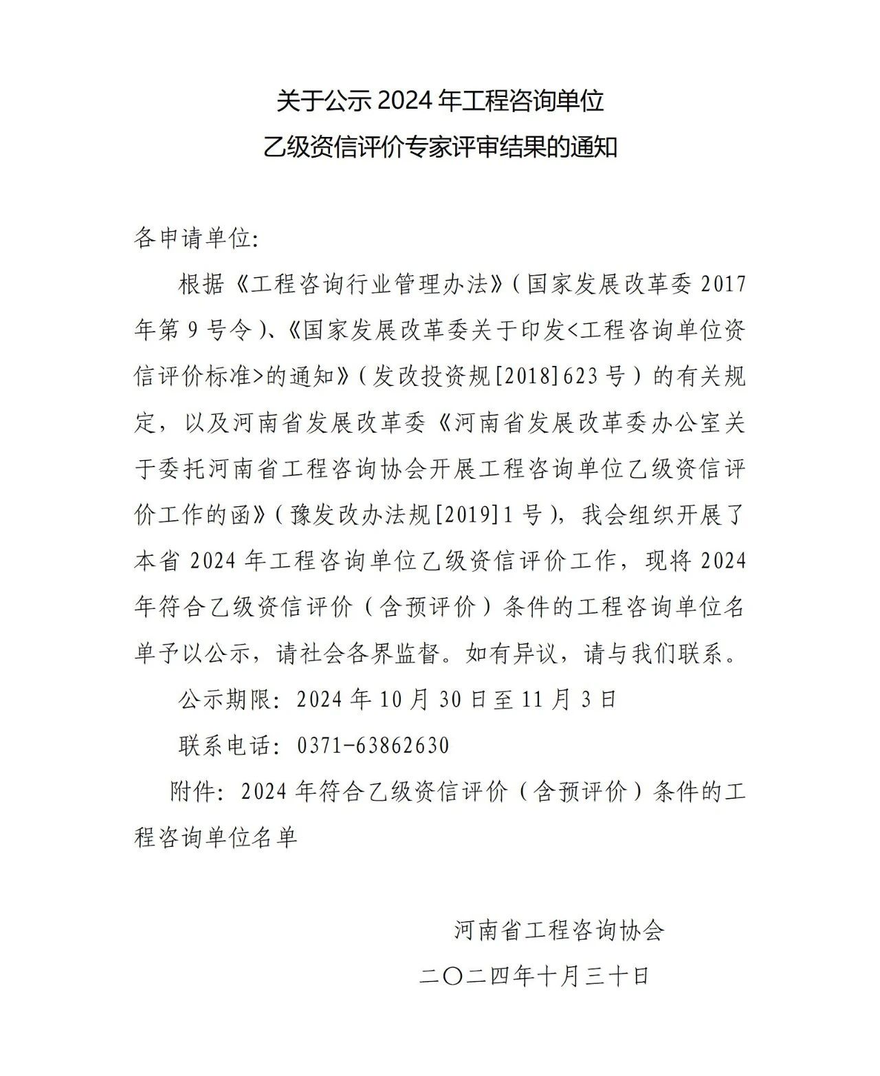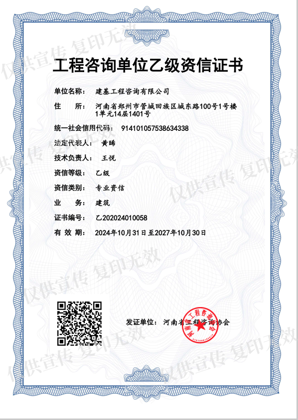 近期,河南省工程咨詢協(xié)會發(fā)布了《關(guān)于公示2024年工程咨詢單位乙級資信評價結(jié)果的通知》,公司成功取得了“工程咨詢單位乙級資信證書”。