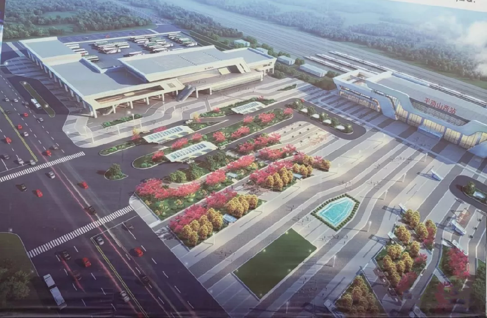 鄭萬高鐵平頂山西站采取“上進下出模式”,廣場上布置出租車、社會車落客區(qū)及公交落客區(qū),旅客從站前廣場地面進站;廣場地下空間與站房出站口連接,旅客由地下一層出站廳上至地面廣場層到達公交客運站;換乘出租車或社會車輛的旅客出站后可直接到達地下一層停車場。鄭萬高鐵是河南省米字形鐵路網(wǎng)的重要組成部分,是溝通西南地區(qū)與中原、華北、東北地區(qū)的重要快速客運通道。