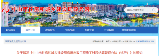 近日,中山市住建局印發《中山市住房和城鄉建設局房屋市政工程施工過程結算管理辦法(試行)》,自2023年1月1日起實施。