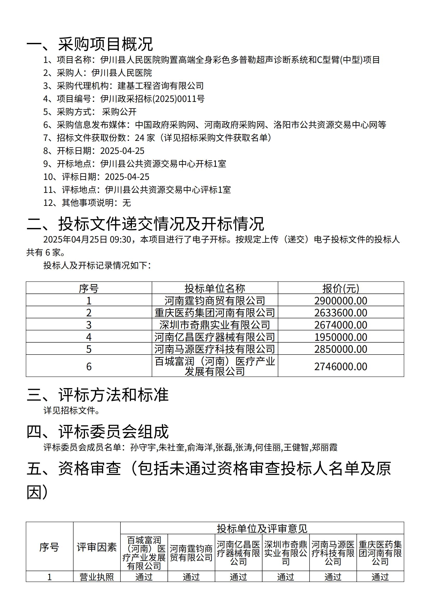 伊川縣人民醫(yī)院購置高端全身彩色多普勒超聲診斷系統和C 型臂(中型)項目評標報告